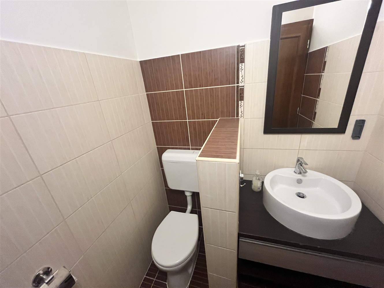 Alsó szint: előszoba, kazánház, mosókonyha, WC, tárolók, garázs, hátsó terasz kertkapcsolattal (saját parkosított udvar, automata öntözőrendszerrel)