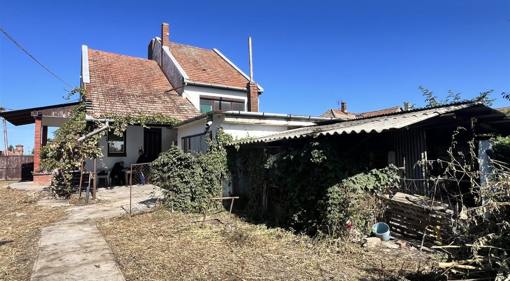 A lakóház mellett található egy önálló garázs is szerelőaknával. A telek hátsó részén több állattartásra alkalmas épület is található.